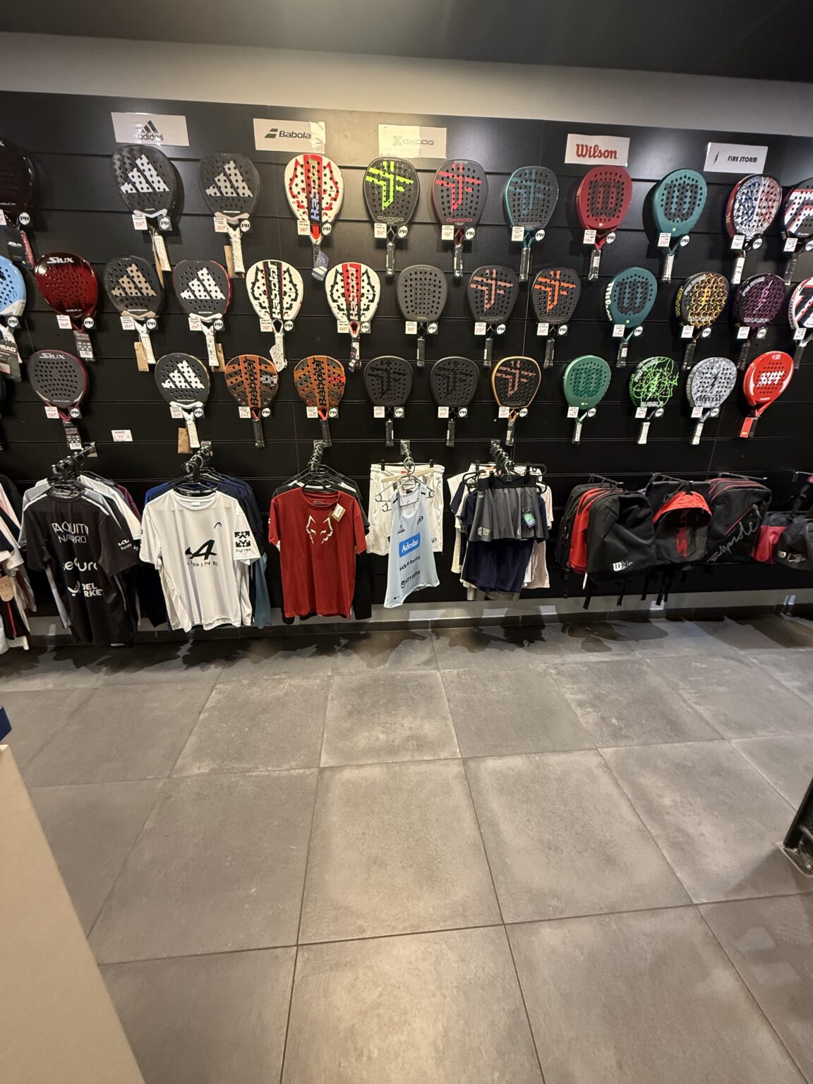 Head, Wilson, Bullpadel, Babolat, Nox, Oxdog et bien d'autres. Vous retrouverez vos marques favorites. Un service cordage est également à votre disposition.